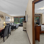 This 2 bedroom condo with ground floor entry is adjacent to the golf course and has great ski-in/ski-out to the Morrisey and Orient Express Chairlifts. It features a full kitchen, 2 full baths, gas fireplace, washer/dryer, 3 flat screen TV/ private hot tub on the deck with views of Mt. Morrisey.